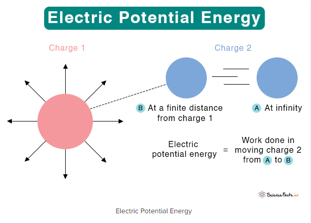The same idea applies to electric fields. To move a positive “test” charge closer to a positive “source” charge, you must apply force and do work against the natural repulsion between the charges. The work you do is stored in the test charge as electrical potential energy. If you were to let go, this stored energy would be released, sending the test charge accelerating away from the source.
