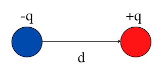 A diagram of a dipole with positive charge +q and negative charge -q, separated by a distance d.